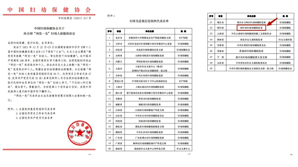 2021年是建党100周年,也是十四五规划的开局之年,回首过去,四川省妇幼保健院在党的引领下提交了成绩瞩目的答卷。院党委将以中国妇幼保健协会激励为起点、转化为动力,不断加强阵地建设,进一步提高班子素质,以高质量党建引领省妇幼高质量发展,为人民群众提供更高品质的医疗保健服务。