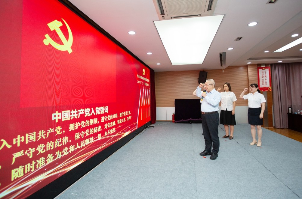 大会在庄严的国歌声中拉开序幕。党委副书记、院长王刚带领新党员进行入党宣誓,主会场、分会场全体党员高举右手一起在党旗前重温誓词,在一句句铿锵有力的宣誓声中,表明了入党时的初心使命,更加坚定了为共产主义奋斗终身的理想信念。