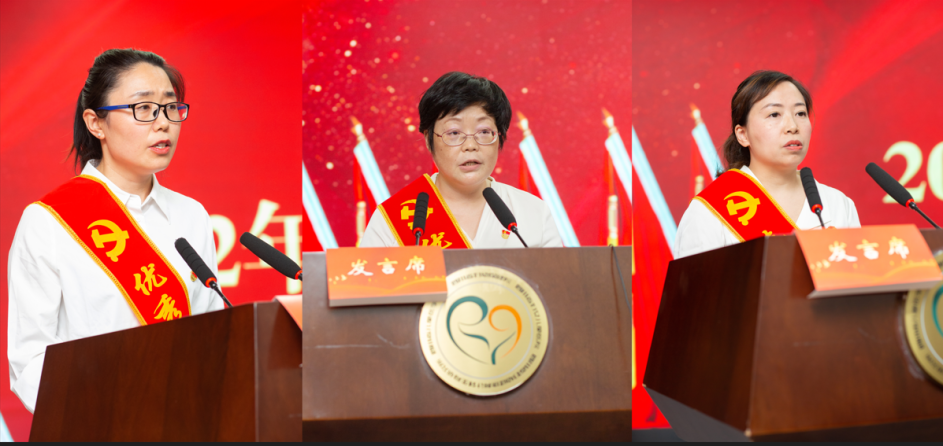 党委副书记、纪委书记谢华均同志宣读院党委表彰决定,王飞等37名党员获优秀共产党员称号、丁杨等13名党务工作者获优秀党务工作者称号、临床第二党总支等 7个基层党组织获先进基层党组织称号。院党委对获得表彰的优秀共产党员、优秀党务工作者和先进基层党组织代表进行大会隆重表彰。优秀共产党员代表张静、优秀党务工作者代表王滨、先进基层党组织代表何婧作了交流发言。