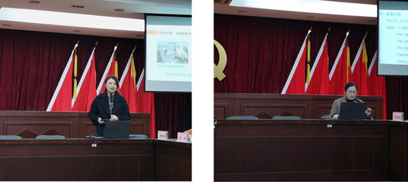 妇科专科护士申报基地负责人刘玲芳、母婴专科护士申报基地负责人徐丹凤汇报基地建设情况。两个基地护理工作特色鲜明,教学培训方式各有千秋,针对评审条款做好了充分的准备工作。