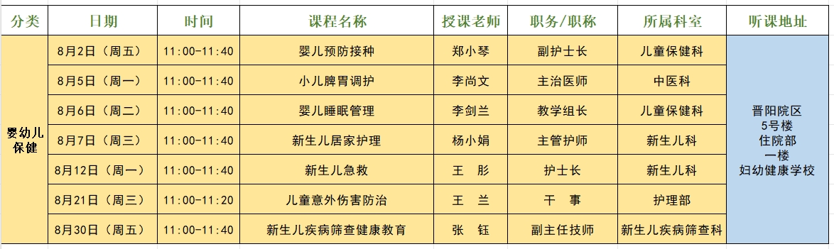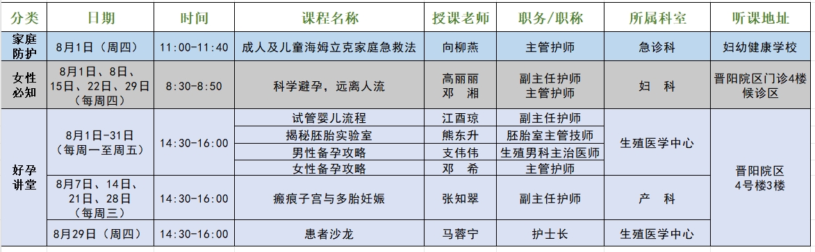 四川省妇幼保健院妇幼健康学校8月课程精彩预告