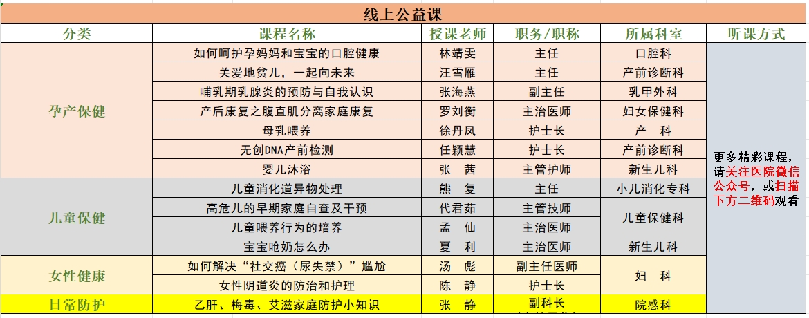我院为孕产期家庭、广大妇女及儿童开设了线下线上公益课及小班精品课。