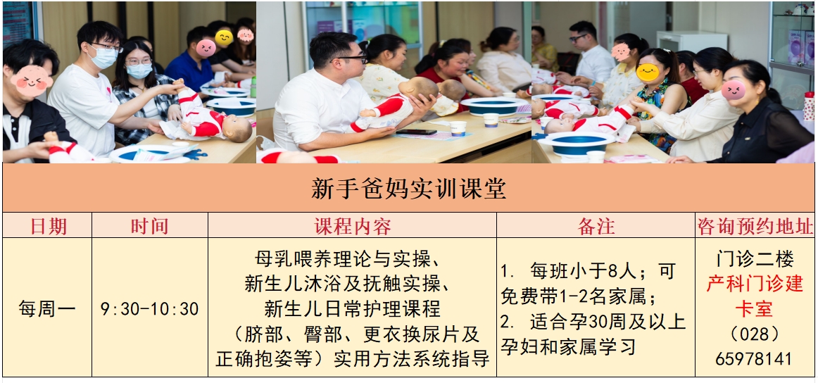 新手爸妈实训课堂、分娩技巧及呼吸镇痛实训课程等,小班教学,每班人数严格控制,还能夫妻共同参与或免费带家属。在专业指导下,提前做好迎接新生命的准备。