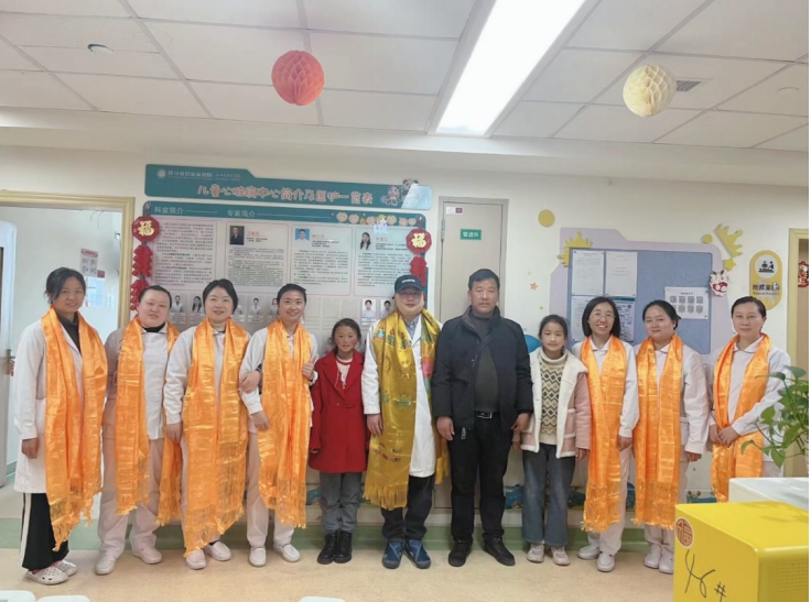 “扎西德勒、扎西德勒”,在病区走廊上,小拉姆爸爸激动的弯腰将哈达戴到每位医护人员的颈上,然后可以双手合十表示感谢,从他朴实无华的言语和行为里,可以看出他对医护人员难以言表的感谢和最真挚的祝福。这样的情景时常出现在儿童心脏病中心,患者浓浓的心意带给医护人员无尽的动力,这一刻我们和他们之间架起了一座座坚实又温暖的桥梁,不再受语言和地域的限制与影响!