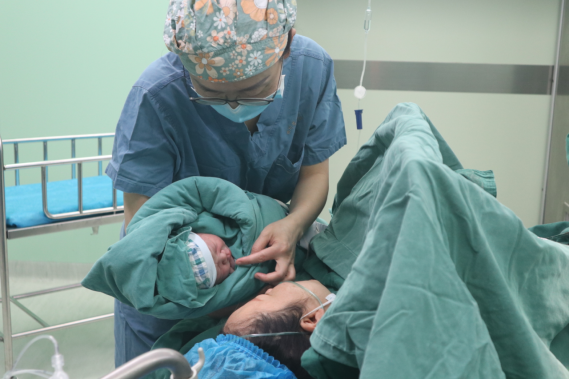伴随着手术器械穿梭在无影灯下,3分钟后,新生儿响亮的哭声回响在手术间的上空......