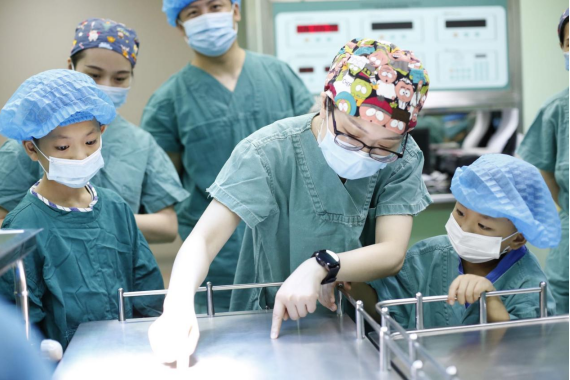 我们不定期举行手术室开放日,邀请小朋友参观手术间,了解自己可能会遇到的新环境,减少小朋友对未知的恐惧。