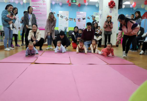 在“鼓点踏步”亲子活动环节,由双胞胎姐妹带领其他小朋友一起表演了文艺节目。根据早产儿发育状况和年龄,分三组进行了爬行比赛。爬行比赛结束后,所有的家属都围坐在一起进行同伴教育、经验交流和情感分享。