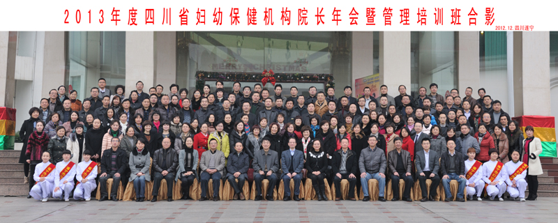 2012年12月13-15日,四川省妇幼保健机构2013年度院长年会暨管理培训班在遂宁召开,来自21个市州63个县级妇幼保健机构的院长、副院长、办公室主任、医务科长、保健科长共183人参加会议。会议由省妇幼保健院主办、遂宁市妇幼保健院协办。会议同期召开了《四川妇幼卫生》市州编委、通讯员座谈会,四川省预防医学会妇幼保健专委会,四川省卫生信息学会妇幼卫生信息专委会。