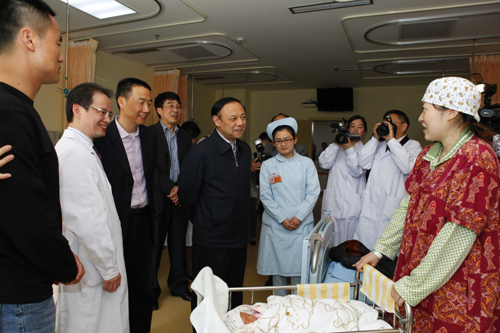 陈文华副省长一行视察了围产保健门诊、营养科、产前诊断中心、功能影像科、检验科、儿科病房、PICU、产科病房、妇幼卫生信息管理办公室等科室,与医务人员进行了亲切交谈,并看望了部分住院患儿。