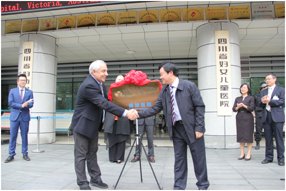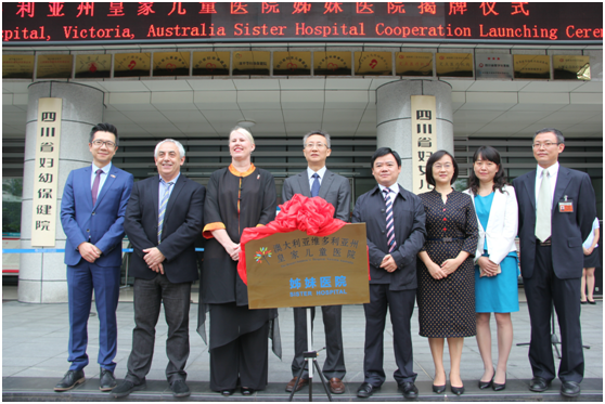 2016年9月23日,省委副书记、省长尹力与澳大利亚维多利亚州州长丹尼尔·安德鲁代表两省州政府共同签署了建立友好省州关系协议书,并共同见证了双方商会、高校、图书馆、医院间等系列合作备忘录的签署。依托这一战略合作平台,四川省妇幼保健院成为西部首家与澳大利亚皇家儿童医院、皇家妇女医院建立姊妹医院合作关系的医疗机构,并于9月24日在我院举行了四川省妇幼保健院与澳大利亚皇家儿童医院姊妹医院揭牌仪式。