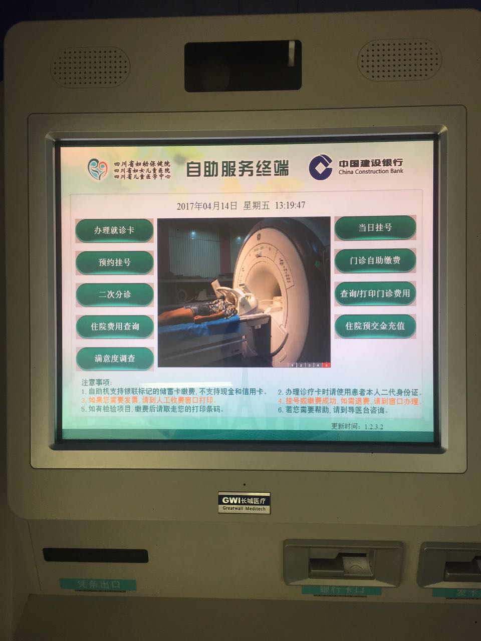 通过“银医自助服务系统”操作,可实现自助办理就诊卡、自助挂号、预约挂号、二次分诊、自助缴费、查询门诊及住院费用、满意度调查、住院预缴金充值等就医业务。