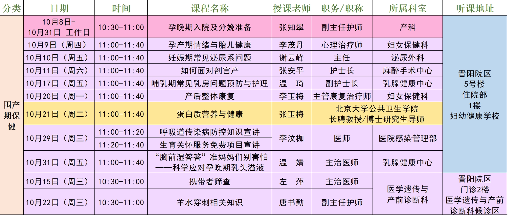 十月孕养课堂 | 四川省妇幼保健院妇幼健康学校课程全揭秘