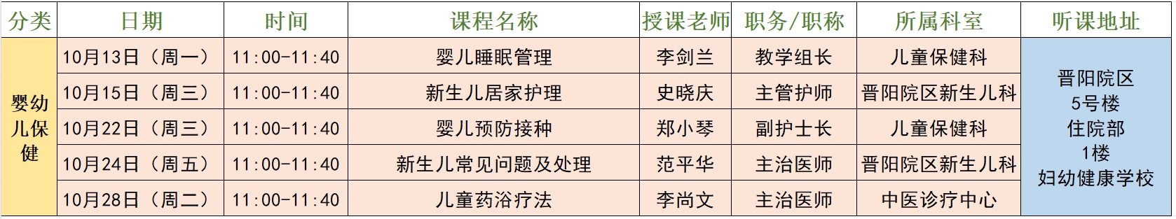 亲爱的准妈妈、新手爸妈以及关注妇幼健康的朋友们,四川省妇幼保健院妇幼健康学校2025年10月课程新鲜出炉啦!本月我们精心准备了丰富多样的课程,涵盖围产期保健、婴幼儿护理、家庭防护等多个领域,由医院资深专家和专业医护人员授课,为您和宝宝的健康保驾护航。
