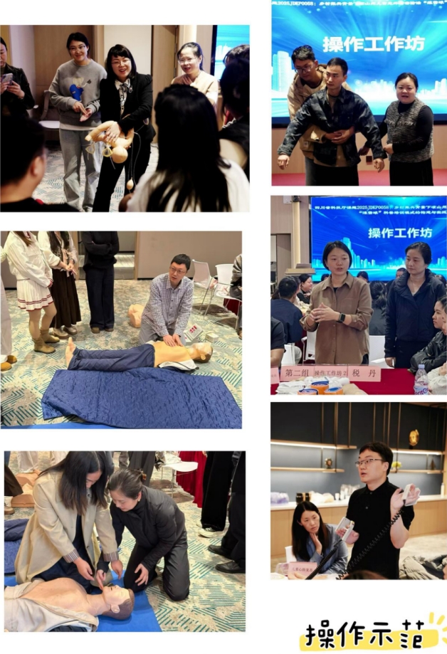 培训采用小班体验式教学,包括线上线下理论+操作工作坊相结合的方式。理论培训邀请到了国内相关领域专家包括全球儿童安全组织中国区首席代表崔彦民教授、儿童心理治疗室顾蕾教授,聚焦于儿童意外伤害发生的特点、未成年人保护法、儿童心理特点及常见意外伤害类型(如溺水、跌落、中毒 、异物梗塞等 ) 的预防措施共10堂理论授课,让学员深刻、系统领会儿童意外伤害防治及科普要点;线下操作工作坊实操由项目负责人四川省妇幼保健院护理部贺晓春主任、急诊科谢成主任、门诊部税丹护士长、小儿外科吴优护士长,急诊科李俊生副主任护师、西昌市妇幼保健院赖明月护士长担任师资,围绕海姆立克急救法、儿童心肺复苏术、创伤止血与骨折固定法,让学员们循环接受三大核心急救技能的手把手教学,通过循环演练与实操和专家们的细致讲解、规范示范,确保每位学员都能深入、全面地学习和掌握三项关键急救技术。学员们积极参与、反复练习,现场学习氛围浓厚热烈。