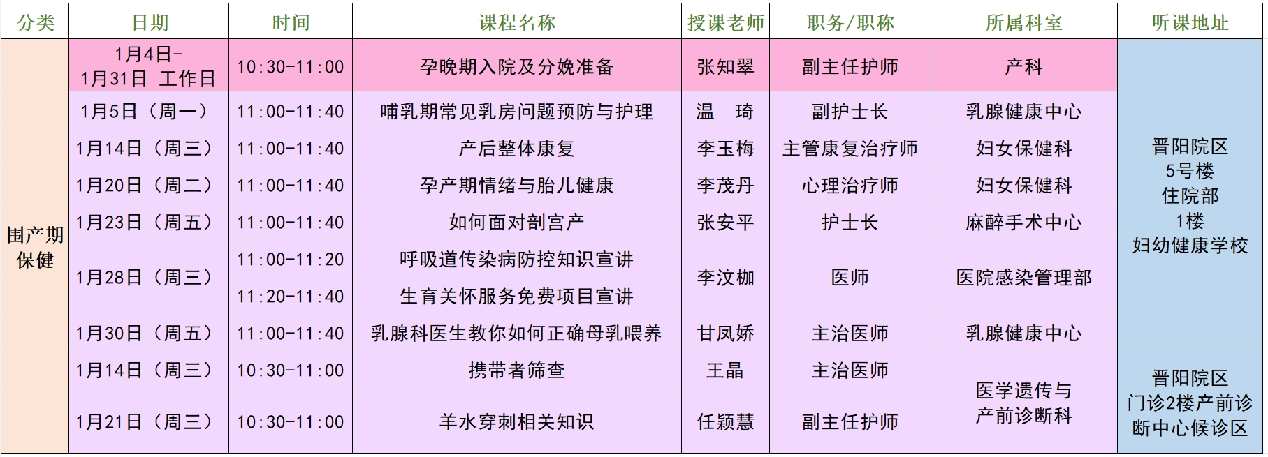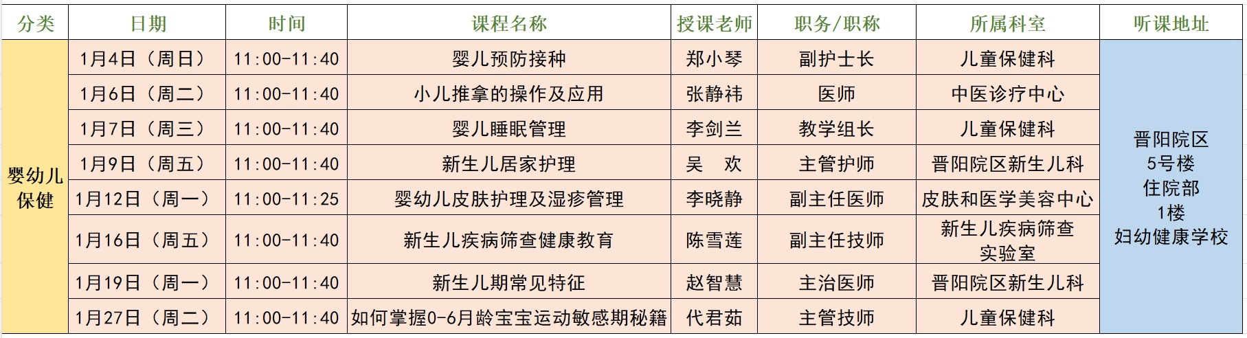 新年护新生!省妇幼2026年1月妇幼健康学校课程清单请收好