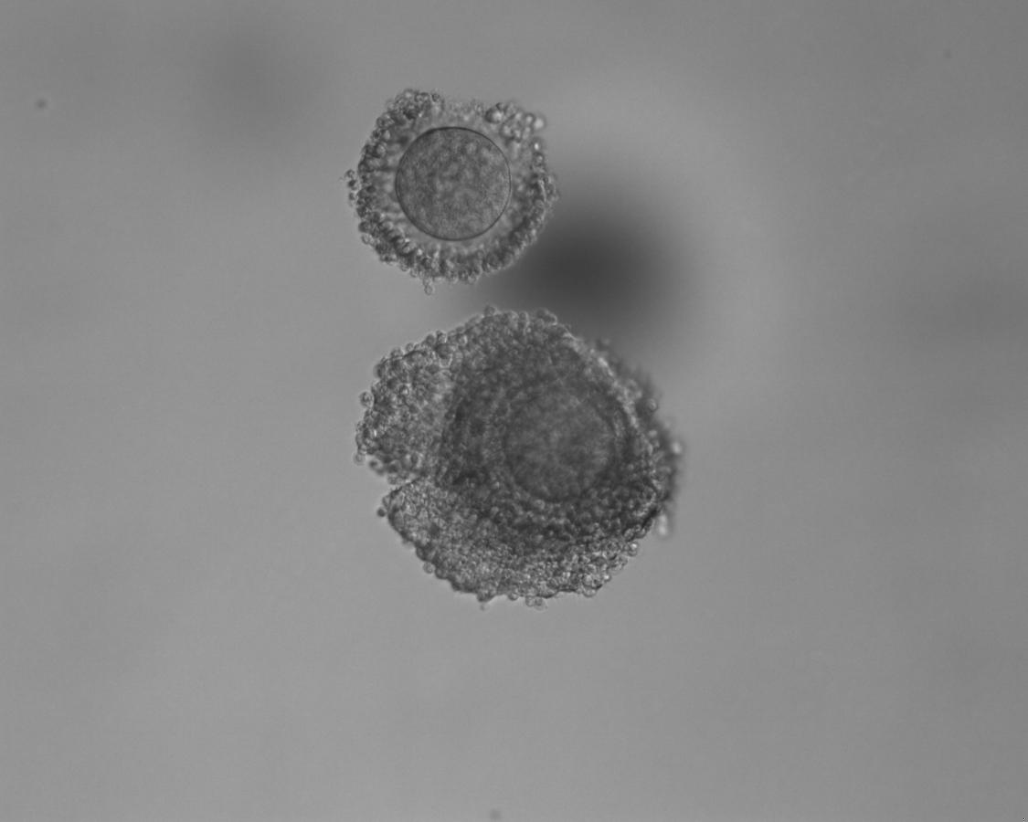 生殖医学中心团队立即将卵巢组织带到胚胎实验室,剥离卵巢皮质,同时收集到的5枚不成熟卵母细胞,采用双相卵母细胞体外成熟激技术(Capacitation-Assisted In Vitro Maturation,CAPA-IVM),拟培养成熟后冷冻保存,为喜儿的未来生育能力上了“双重保险”。