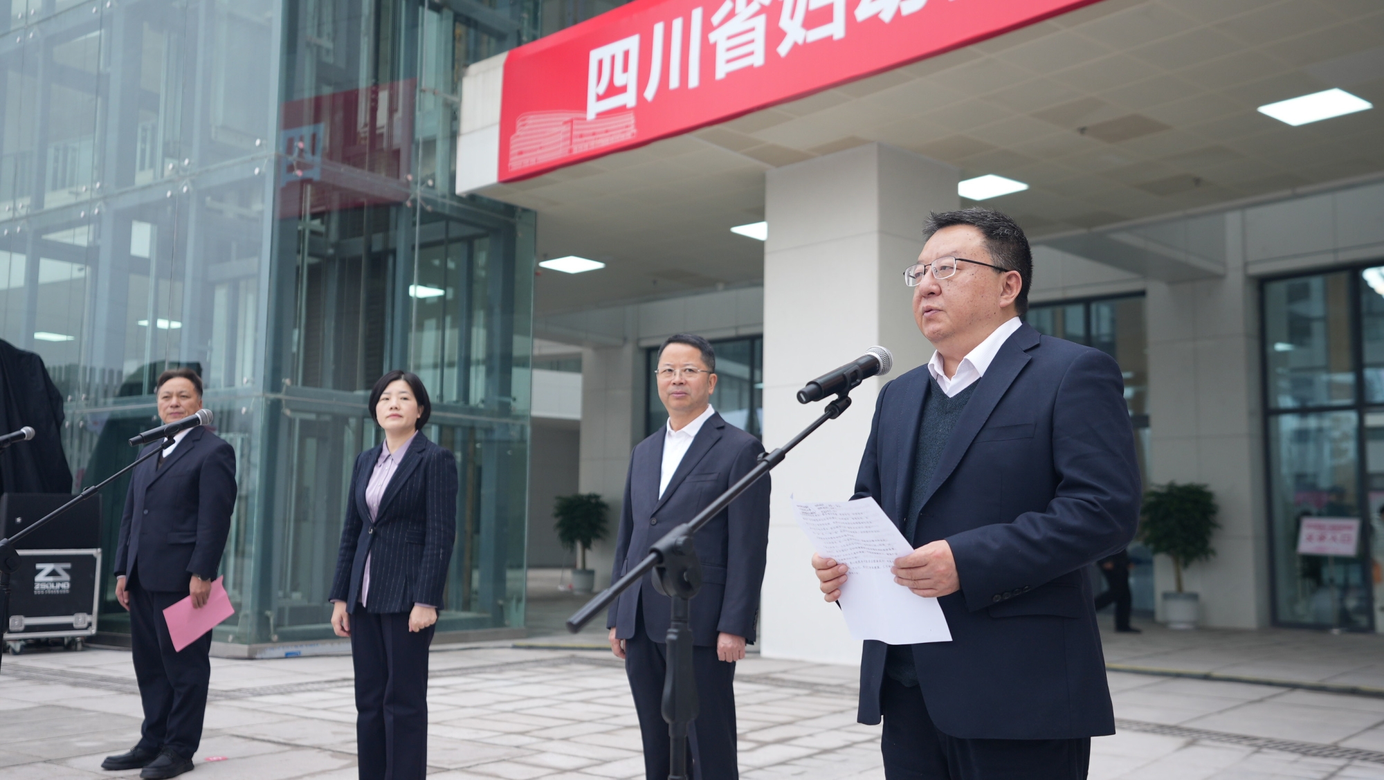 上午11时, 揭牌仪式在医院门诊广场正式举行。仪式由市政府副市长蒋春华主持。市委常委、宣传部部长洪丽发表致辞,对省妇幼保健院的支持表示感谢,并对区域中心医院的 未来提出殷切期望。随后,市妇女儿童医院职工代表宣读服务承诺,誓言将以更精湛的技术、更优质的服务守护妇女儿童健康;医院党支部书记陈志强作表态发言, 表达了深耕妇幼健康事业、不负社会重托的决心。苏建明书记在致辞中表示,省妇幼保健院将以联盟合作为纽带,在技术支持、人才培养、学科建设等方面给予全方 位帮扶,与广安携手共建区域妇幼健康高地。最后,在热烈的掌声中,苏建明书记与市委副书记、市政府市长刘襄渝共同为“四川省妇幼保健院专科联盟区域中心医 院”揭牌,标志着广安妇幼健康事业正式迈入“联盟赋能、资源共享、协同发展”的新阶段。