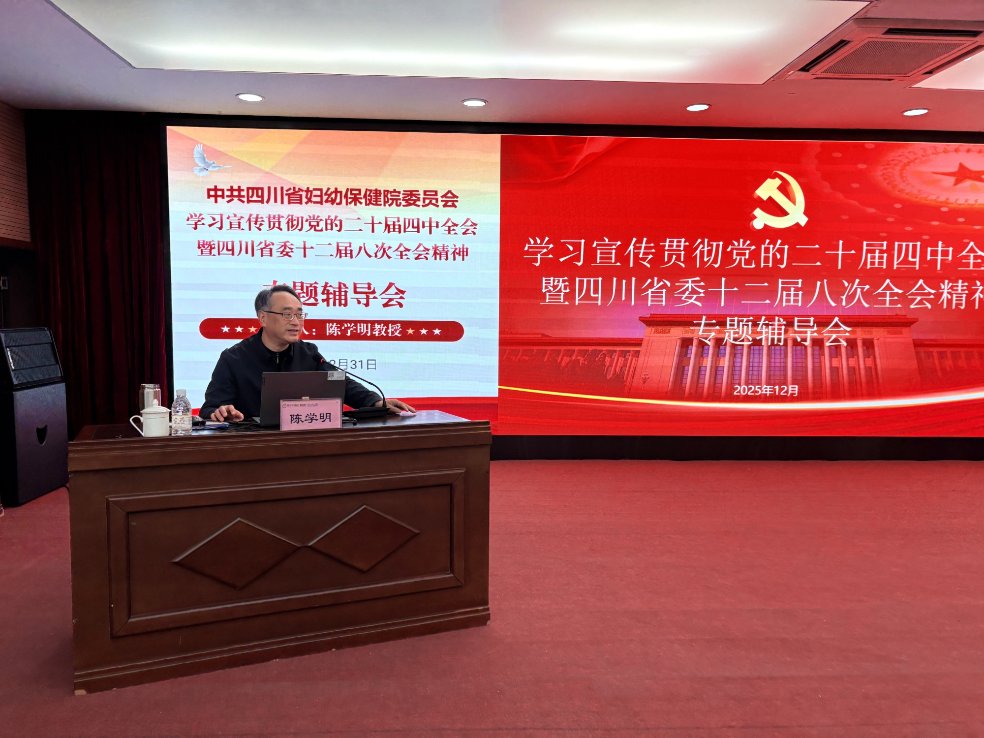 为深入学习宣传贯彻党的二十届四中全会和省委十二届八次全会精神,深刻把握国家“十五五”时期发展的指导思想与目标任务,科学谋划医院未来发展,四川省妇幼保健院党委高度重视,认真部署,在全院范围内掀起了学习宣传贯彻会议精神的热潮。在此背景下,医院党委于2025年12月31日组织召开专题辅导会。