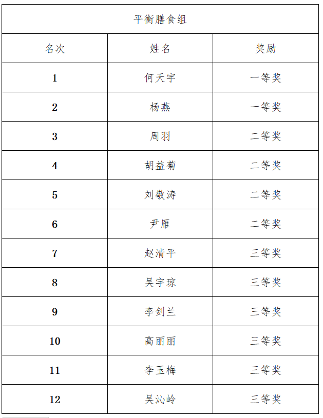 健康减重三等奖:赵清平、吴宇琼、李剑兰、高丽丽、李玉梅、吴沁岭(6人)
