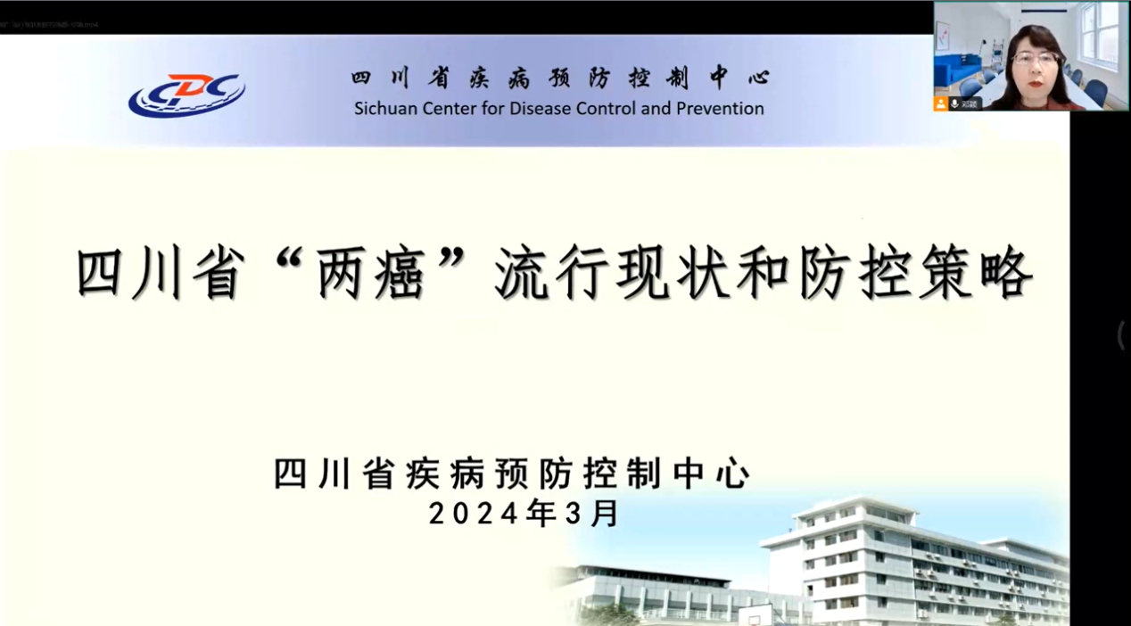 四川省疾病预防控制中心慢病所所长邓颖分享了四川省慢病综合监测发展历程,并就宫颈癌、乳腺癌的流行现状及影响因素进行了详细的分析,授课中邓颖所长悉心报告了21个市(州)“两癌”的发病率和死亡率,提醒高风险地区加强防控。