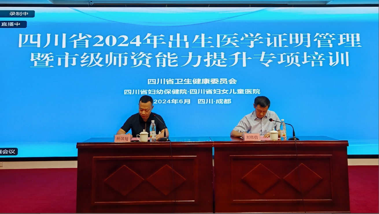 2024年6月19日-20日,由四川省卫生健康委指导,四川省妇幼保健院主办的2024年全省出生医学证明管理暨市级师资能力提升专项培训在成都成功举办。各市级管理机构分管领导及管理人员共70余人参加现场培训,县级管理及签发人员共计1000余人(累计13000余人次)通过“云上妇幼”远程医疗平台参加线上培训。四川省卫生健康委妇幼处四级调研员杨国超出席开班式并致辞,四川省妇幼保健院副院长刘伟信主持开班式。